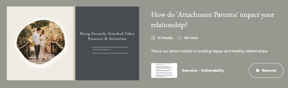 One of the most popular topics in the hub, ‘Attachment Patterns’ talks about how early childhood experiences may be impacting how you communicate in your relationship.